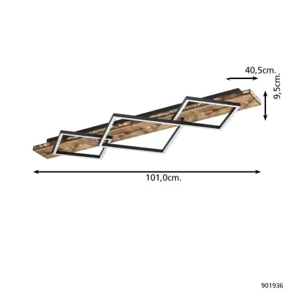 Eglo Deckenleuchte Boyal Holz Schwarz, Rostig 26W 3500lm - 830