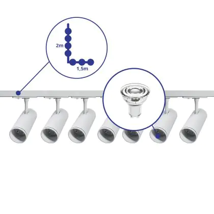| Herstellername | Complete L shaped 1-Phase Track Set White incl. 7x Spot fixture + GU10 2700K 3W Dim – 1.5 x 2 meters | |