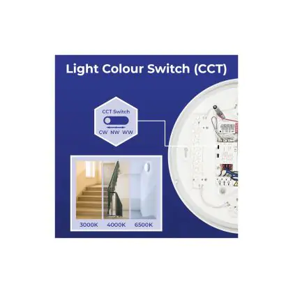 2. CCT: Sie wählen über einen Schalter aus 2 oder 3 festen Farben aus, z. B. Warmweiss oder Kaltweiss.