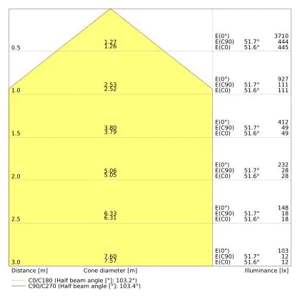 Der Abstrahlwinkel bezeichnet den Winkel, in dem das Licht aus der Lichtquelle ausgestrahlt wird. Er wird in Grad (D) angegeben. Je geringer die Gradzahl des Abstrahlwinkels ist, desto kleiner ist auch der Durchmesser des Lichtkegels, den die Lichtquelle produziert.