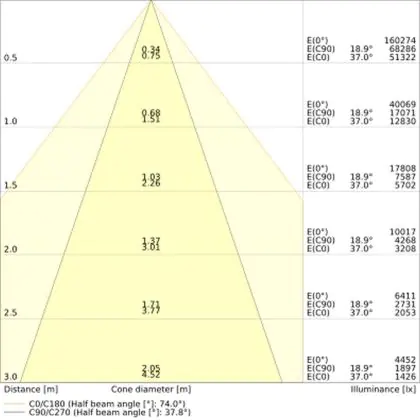 Der Abstrahlwinkel bezeichnet den Winkel, in dem das Licht aus der Lichtquelle ausgestrahlt wird. Er wird in Grad (D) angegeben. Je geringer die Gradzahl des Abstrahlwinkels ist, desto kleiner ist auch der Durchmesser des Lichtkegels, den die Lichtquelle produziert.
