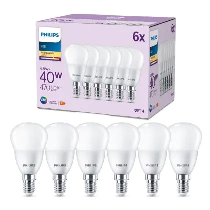 | Herstellername | Box 6 stuks - Philips LED Kogellamp Mat - 40 W - E14 - Warmwit licht | |
