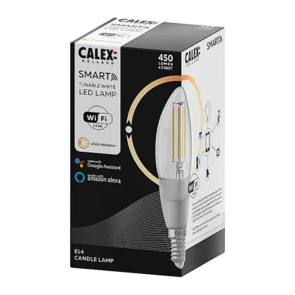 Description Calex Smart Tuya Wifi E14 Bougie Filament 4.5W 450lm - 818-830 Accordable Blanc | Dimmable - Remplacement 40W
