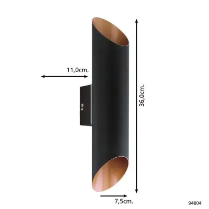 Description Eglo Applique Murale Agolada Extérieur Acier Galvanisé Noir, Cuivre 7.4W 660lm - 830