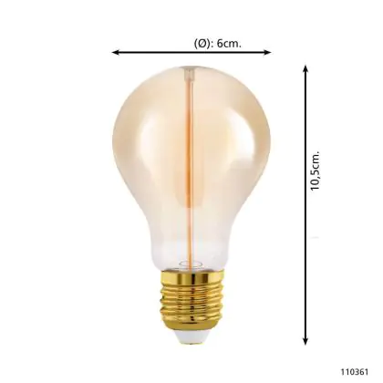 Eglo LED Poire E27 Filament Ambre 2W 100lm - 818 | Dimmable - Remplacement 15W