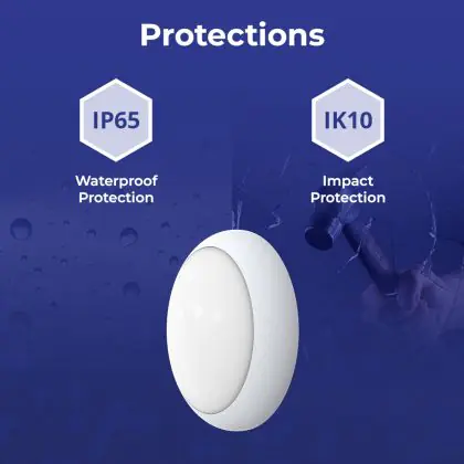 La valeur IK représente la résistance aux chocs et la protection contre le vandalisme. Elle est exprimée avec 2 chiffres (IK00 - IK10). Les produits portant la mention IK00 ne sont pas protégés contre la résistance, tandis que les produits portant la mention IK10 offrent une protection contre les impacts de 20 joules et sont également anti-vandalisme.