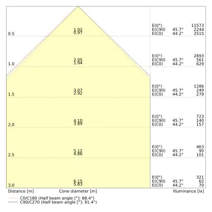 Le code couleur se compose de l'indice de rendu des couleurs (IRC) et de la température de couleur (Kelvin). Le premier chiffre indique le rendu des couleurs (1 = très mauvais rendu des couleurs, 9 = meilleure authenticité des couleurs). Le deuxième et troisième chiffre indiquent la température de la couleur. Exemple : Le code couleur "830" indique que la lampe a un bon rendu des couleurs (8) et une couleur de lumière blanche chaude (30 = 3000K). |