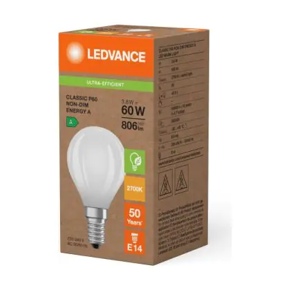| Nom du fabricant | LED CLASSIC P ENERGY EFFICIENCY A S 3.8W 827 Frosted E14 | |