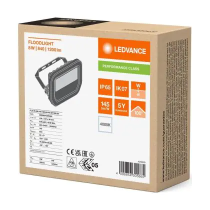 Description Ledvance Projecteur LED Aluminium Noir 8W 1200lm 100D - 840 | IP66 - Symétrique