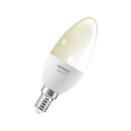 Cette ampoule Ledvance Smart+ BT E14 Bougie 5W 470lm - 827 | Dimmable - Remplacement 40W est l’alternative idéale pour la remplacement de votre ampoule classique de 40 W. La technologie LED intégrée vous offrira de nombreux avantages. Les ampoules à incandescence traditionnelles ont une durée de vie limitée. Cette alternative LED vous permettra de profiter d’un éclairage durable et fiable.
