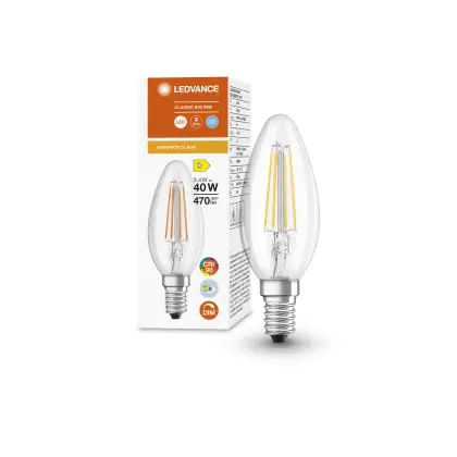 Cette ampoule rétro Ledvance Superior Classic LED E14 Bent-Tip Bougie Filament Claire 3.4W 470lm - 940 | Dimmable - Meilleur rendu de couleur est l’alternative idéale pour la remplacement de votre ampoule classique de 40 W. La technologie LED intégrée vous offrira de nombreux avantages. Les ampoules à incandescence traditionnelles ont une durée de vie limitée. Cette alternative LED vous permettra de profiter d’un éclairage durable et fiable.