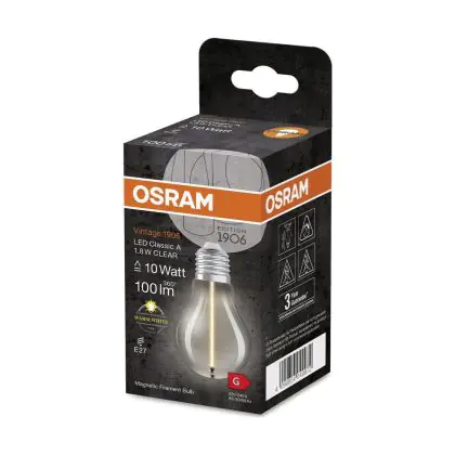 Cette ampoule Osram Vintage 1906 LED E27 Special Filament Claire 1.8W 100lm - 827 | Remplacement 15W avec son efficacité lumineuse de lumen par watt vous permettra de profiter d’un éclairage de qualité. Avec sa durée de vie de 15000 heures, vous n’aurez pas à vous soucier de son remplacement avant quelques années.