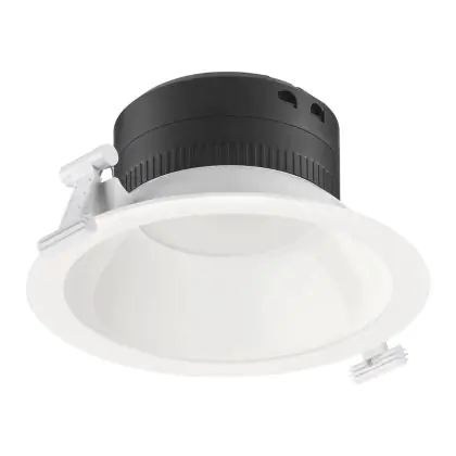 Les spots LED encastrables (aussi appelés Downlights) sont des solution éco-énergétiques permettant de remplacer les spots classiques équipés de technologie à fluorescence. Ce downlight Philips Spot encastrable LED Coreline DN140B 11.5W 1100lm 120D - 840 | 162mm - Blanc Réflecteur - Dali Dimmable est conçu pour remplacer un spot classique de 2x18. La consommation de ce downlight LED est considérablement plus faible qu’un luminaire classique, à savoir, seulement 11.5 watts. Une économie d’énergie sans compromettre la qualité de la lumière. Le flux lumineux est de 1100 lumens. La lumière de ce downlight LED est diffusé à 120 degrés et offre un bon rendu des couleurs. La durée de vie moyenne de ce luminaire LED est de 50000 heures.
