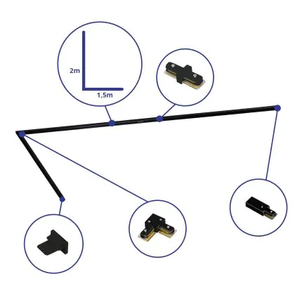Rail Set Rail Monophasé L 1,5 x 2 Mètre Noir | incl. Embout, Connecteur d’Alimentation et L -Connecteur